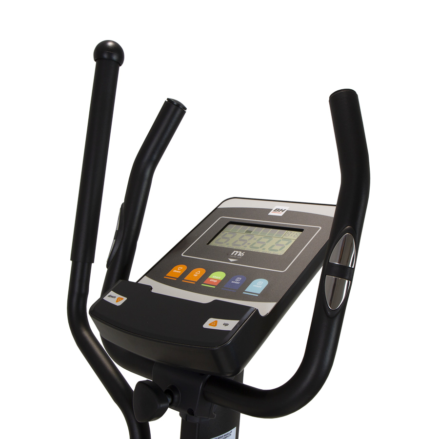 Sensores de pulso integrados en el manillar que miden la frecuencia cardíaca al contacto de las manos. Permite controlar la intensidad del entrenamiento de forma rápida y cómoda.