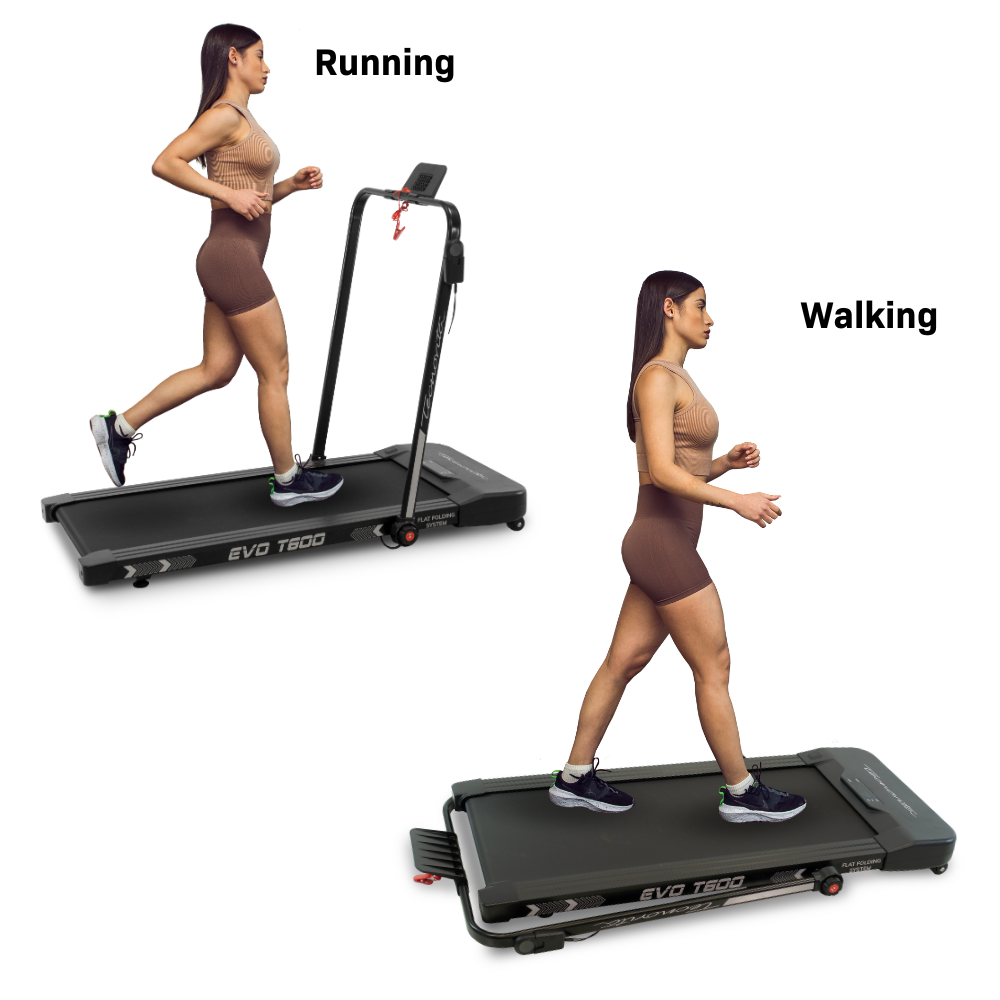 La EVO T600 ofrece la versatilidad de plegar su barra para poder utilizar la cinta para andar, adaptándose a diferentes espacios.